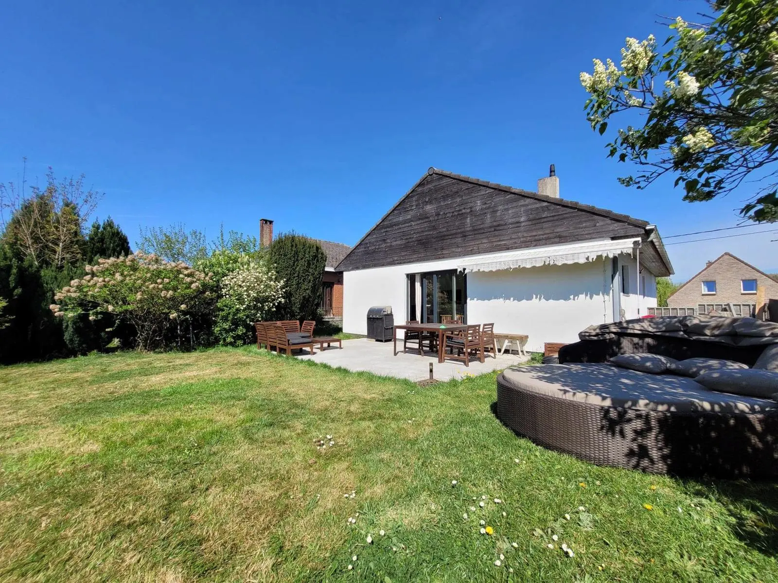 BIDD Immobilier vous propose ce superbe bungalow situé à la campagne et dans une rue à faible passage. Rénové en 2019, ce plain-pied de 112 m2 habitables vous séduira par sa situation, sa luminosité et par son grand jardin orienté Sud. En voici la description :