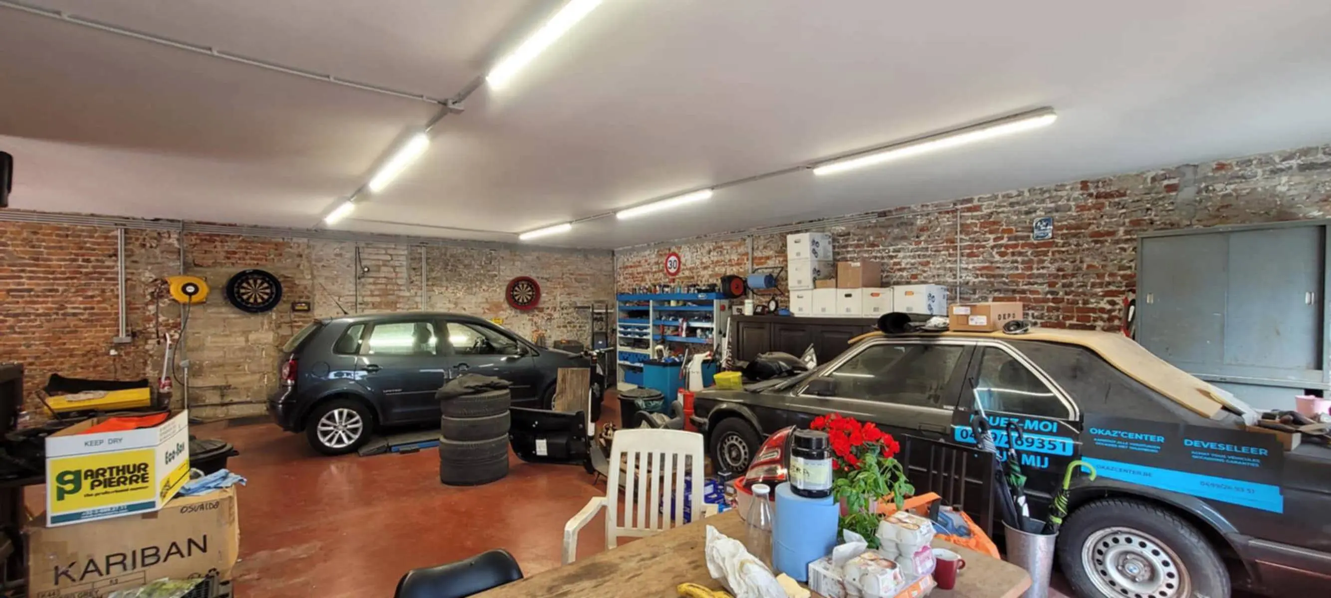 Actuellement occupé comme garage automobile, cet immeuble mixte est composé d'un atelier avec bureau séparé et d'un appartement 2 chambres à l'étage, le tout rénové il y a quelques années