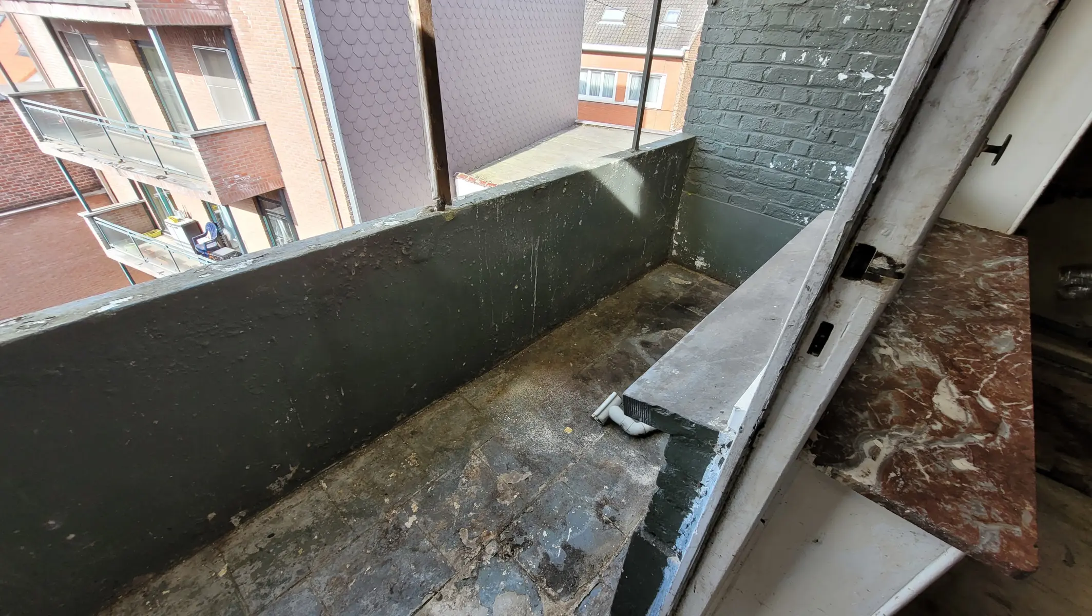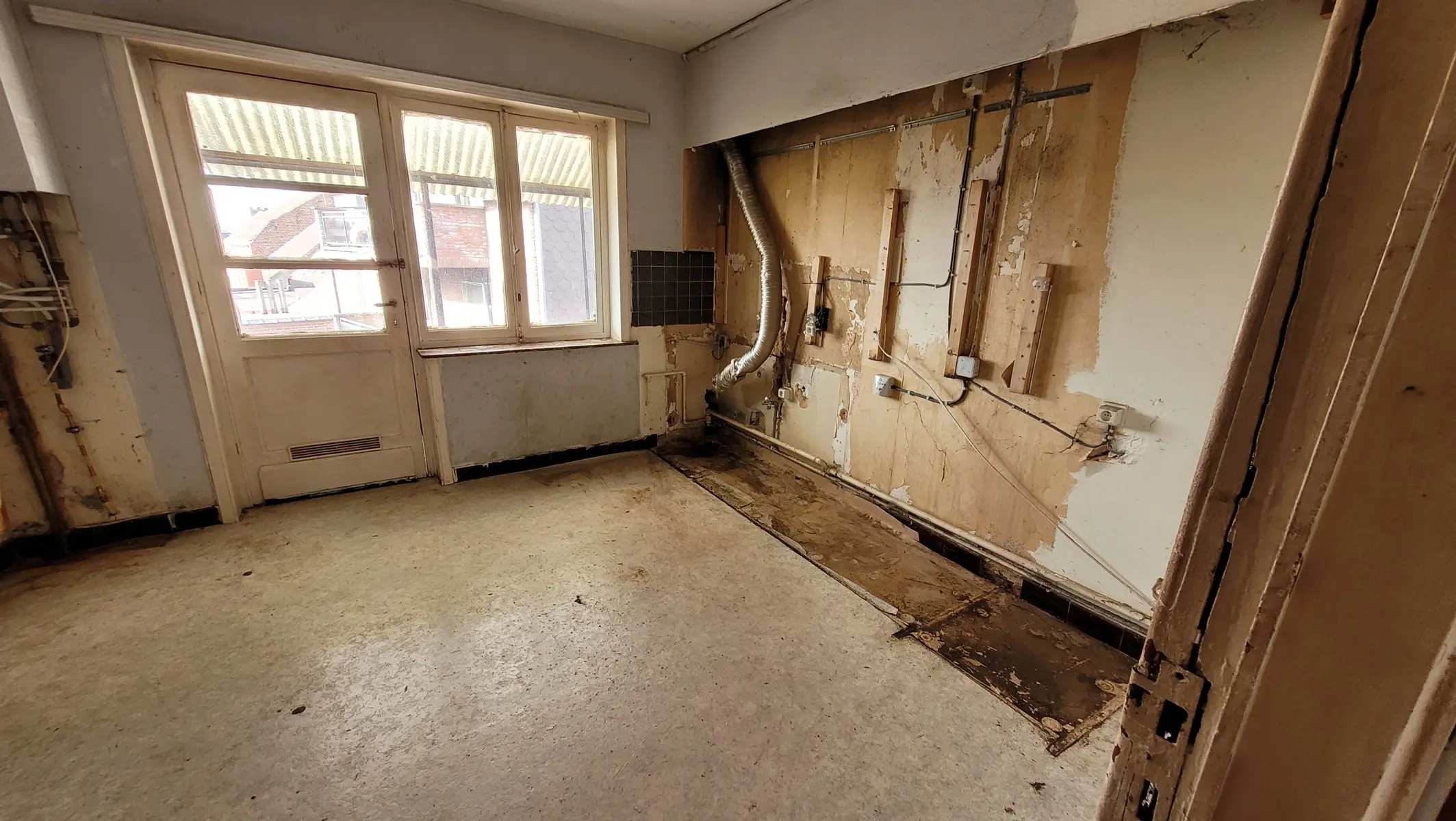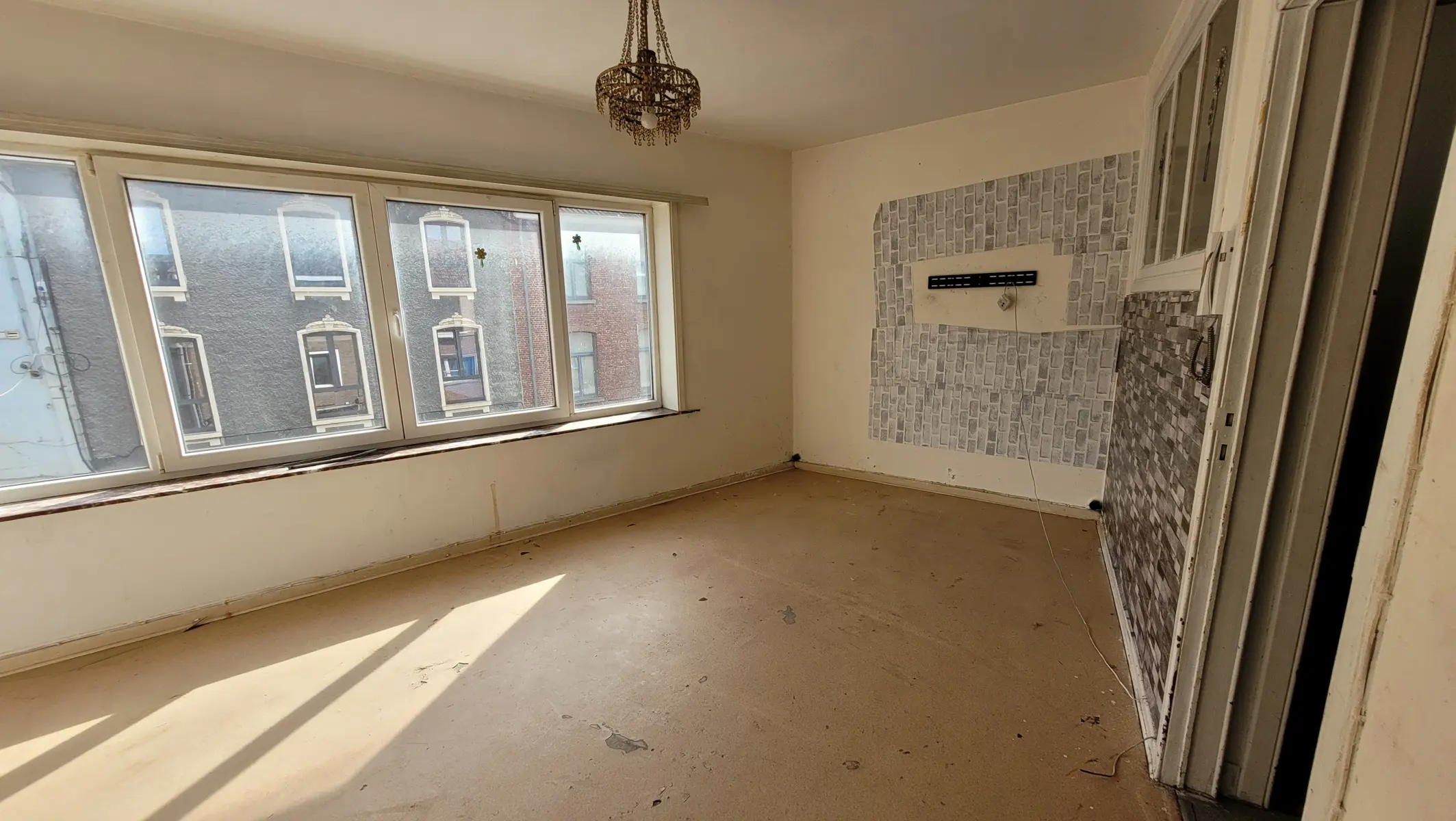 Aux étages, un appartement triplex 3 chambres de 131 m2 avec petite terrasse à rénover et réaménager totalement (PEB C)