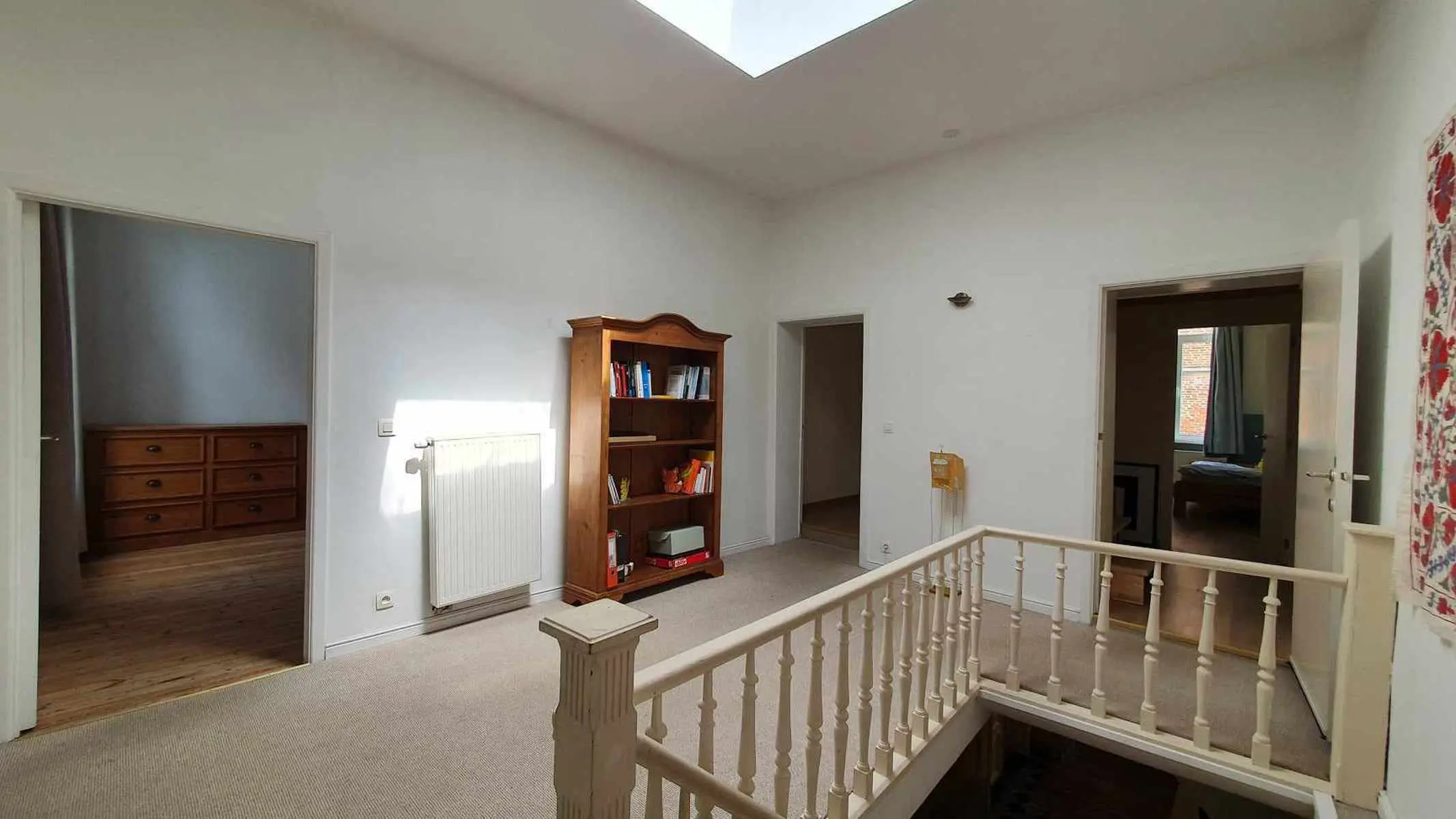 Au premier étage : lumineux hall de nuit avec wc séparé, 3 chambres (24, 22.5 et 11 m2) dont une avec dressing attenant, salle de bains avec douche, grenier