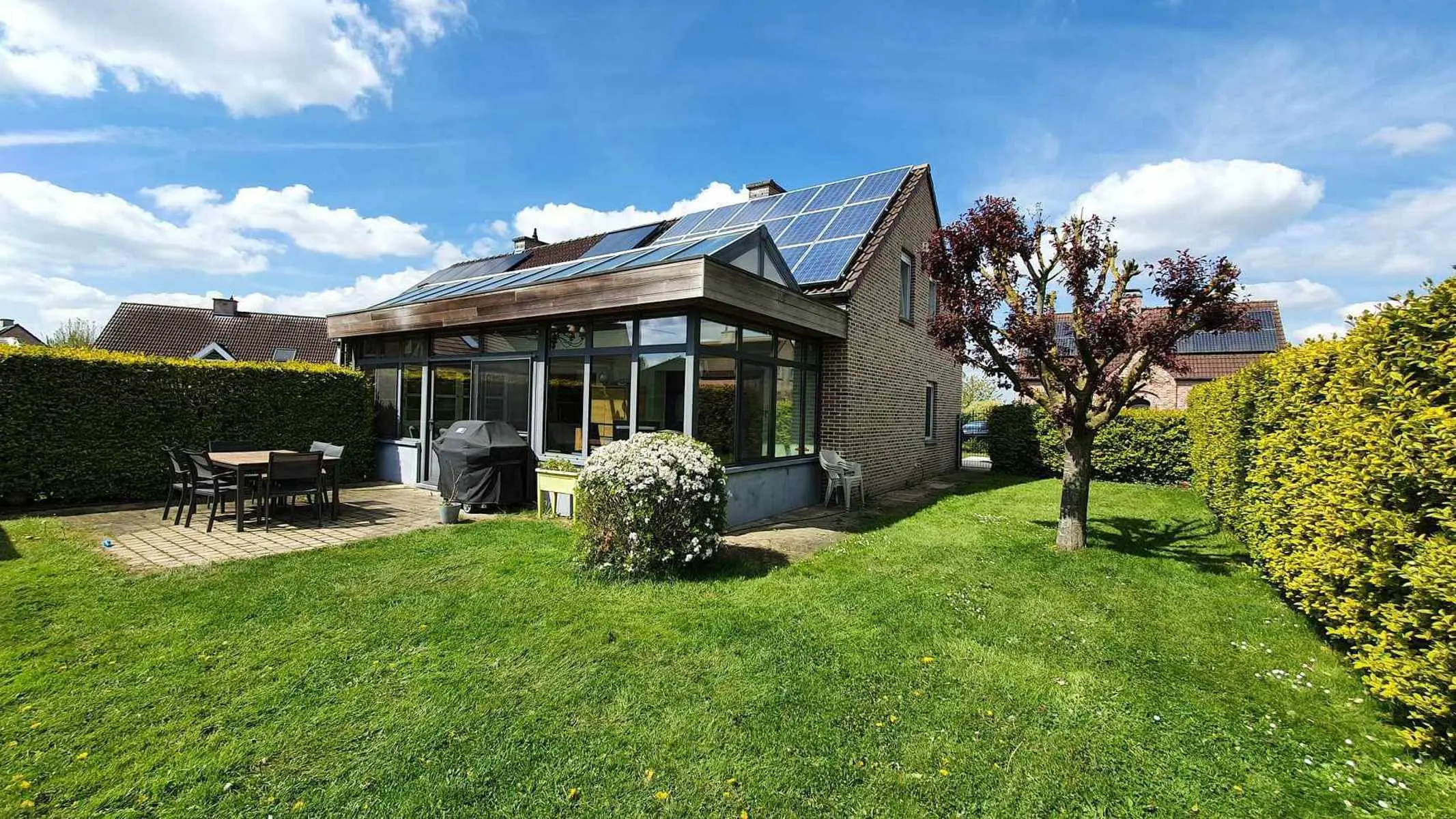 Chauffage central gaz avec chaudière à condensation - Châssis double vitrage - Electricité conforme - Citerne d'eau de pluie de 5000 litres - 20 panneaux photovoltaïques - Excellent PEB : B 167 kwh/m2/an