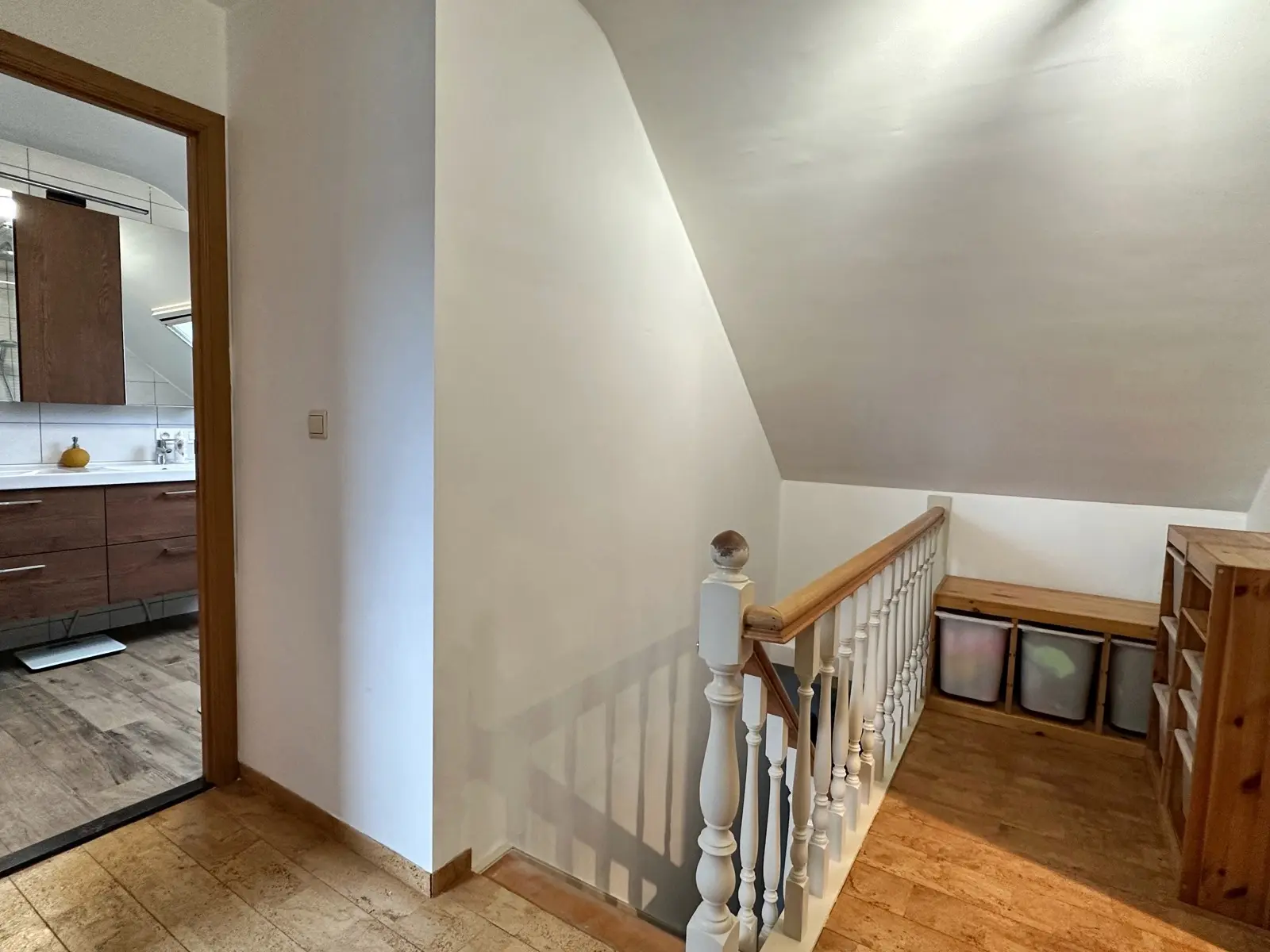 A l'étage : hall de nuit, salle de bains avec douche et wc ( rénové en 2021), 3 chambres (17,5, 11,5 et 10,5 m2), grenier de rangement.