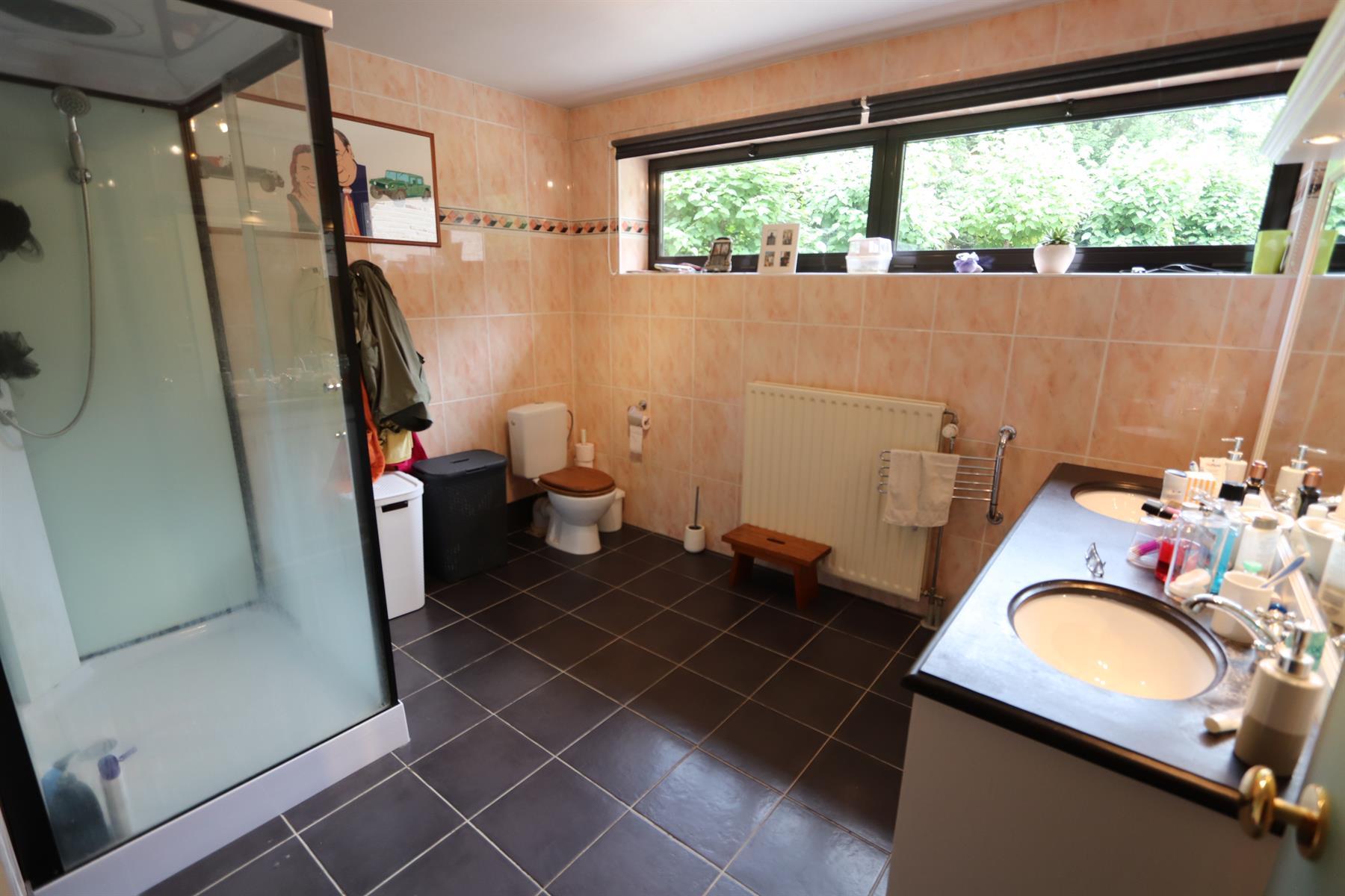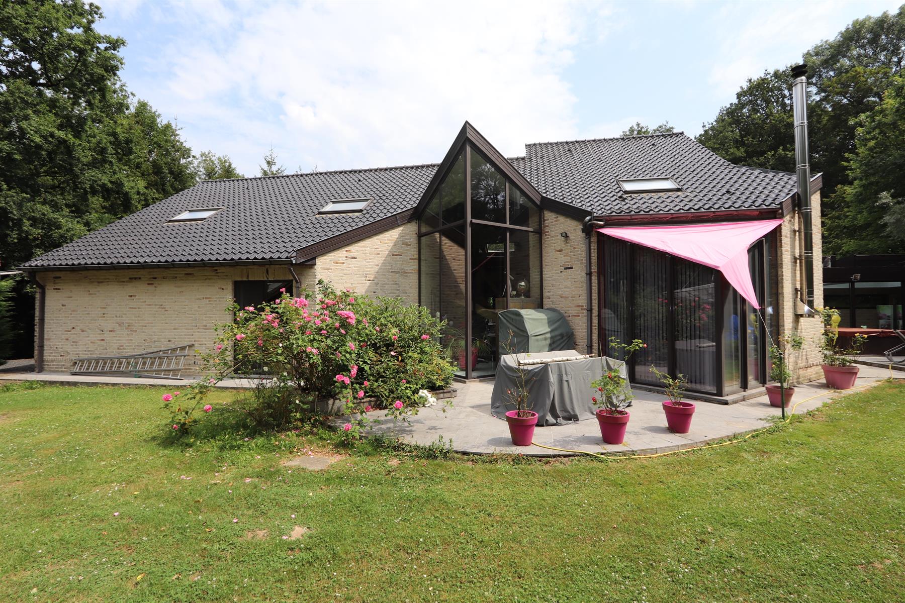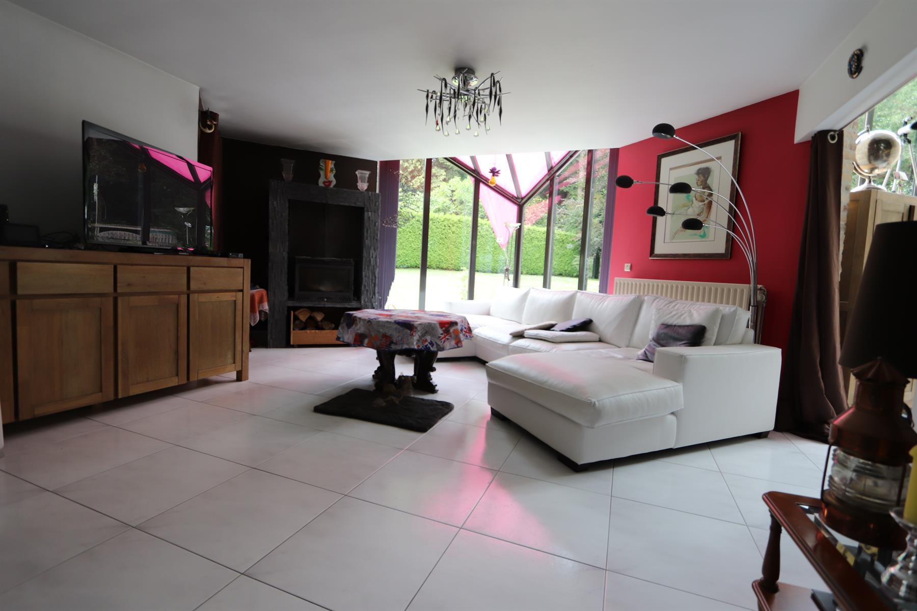 VENDU BIDD immobilier vous propose une spacieuse villa dans le Bois de Strihoux, de +/- 460 m² brut dont 370 m² habitable sur une beau terrain plat idéalement orienté de 38 ares ; à 5 min du centre d'Enghien, de son golf et de l'A8. Elle se compose d'un élégant hall d'entrée, d'un bureau,d'une chambre d'une sdb avec accès à la terrasse et au jardin, d'une cuisine équipée, un grand et lumineux séjour et une piscine intérieure.Un double garage automatique, la chaufferie et l'espace bien être (sauna et jacuzzi) complètent le niveau.A l'étage, hall de nuit, 2 chambres, une SDB et un appartement avec entrée indépendante ( chambres, dressing, cuisine et SDB)Jacuzzi extérieur également. VIDE VENTILE SOUS TOUTE LA MAISONInfos et visites par e-mail où au 0474 33 26 39.
