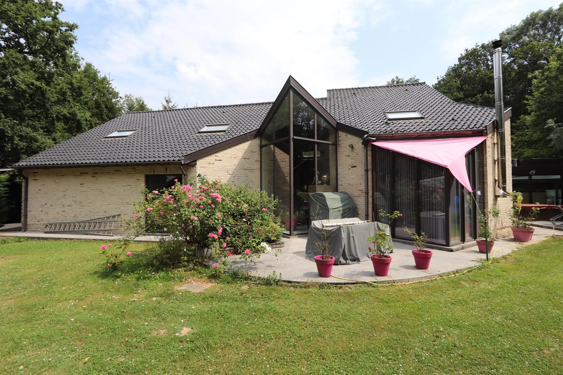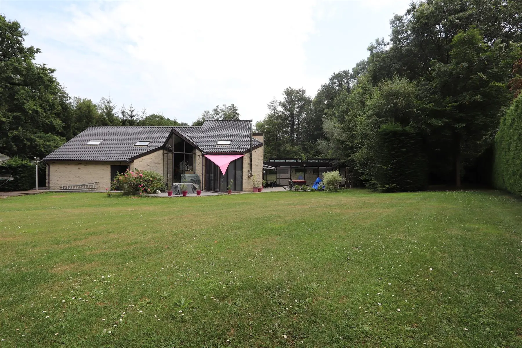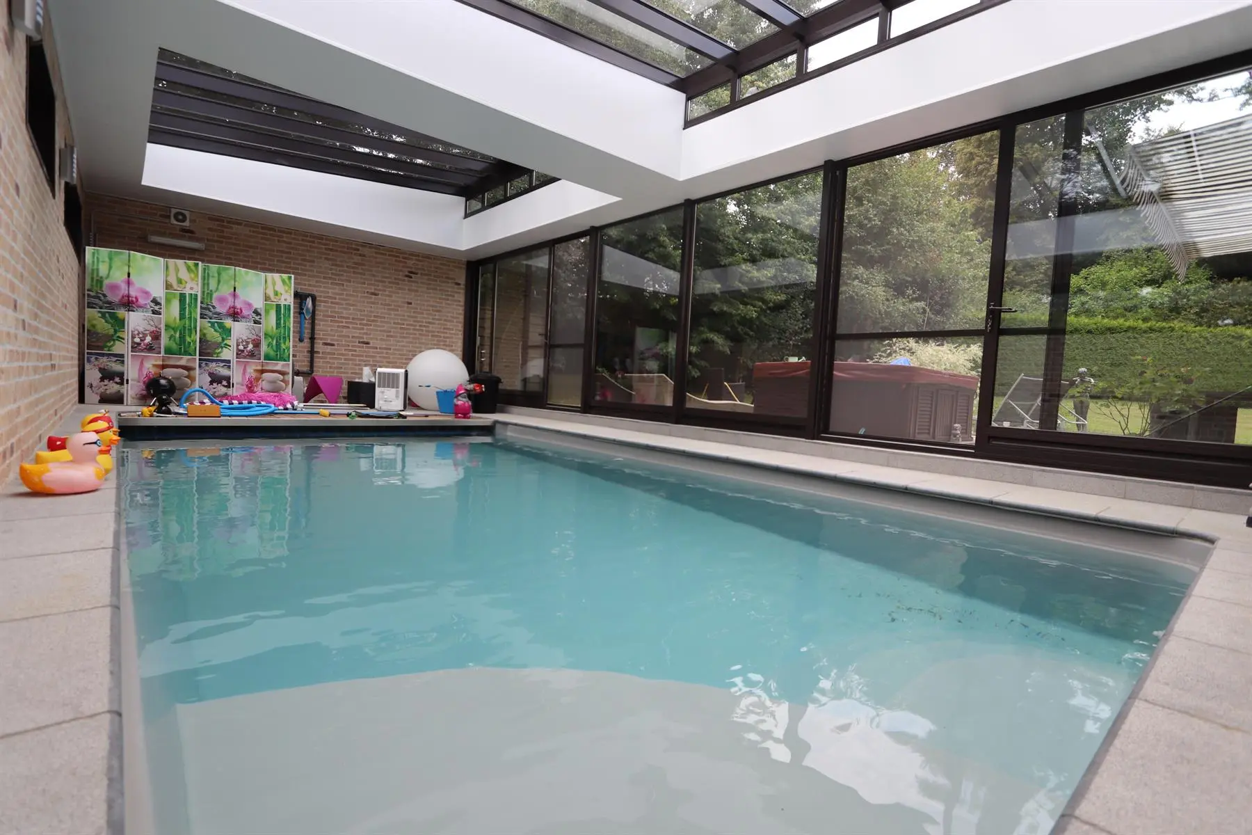 VENDU BIDD immobilier vous propose une spacieuse villa dans le Bois de Strihoux, de +/- 460 m² brut dont 370 m² habitable sur une beau terrain plat idéalement orienté de 38 ares ; à 5 min du centre d'Enghien, de son golf et de l'A8. Elle se compose d'un élégant hall d'entrée, d'un bureau,d'une chambre d'une sdb avec accès à la terrasse et au jardin, d'une cuisine équipée, un grand et lumineux séjour et une piscine intérieure.Un double garage automatique, la chaufferie et l'espace bien être (sauna et jacuzzi) complètent le niveau.A l'étage, hall de nuit, 2 chambres, une SDB et un appartement avec entrée indépendante ( chambres, dressing, cuisine et SDB)