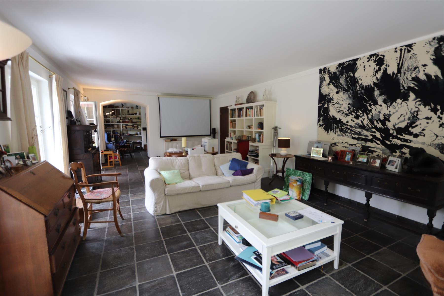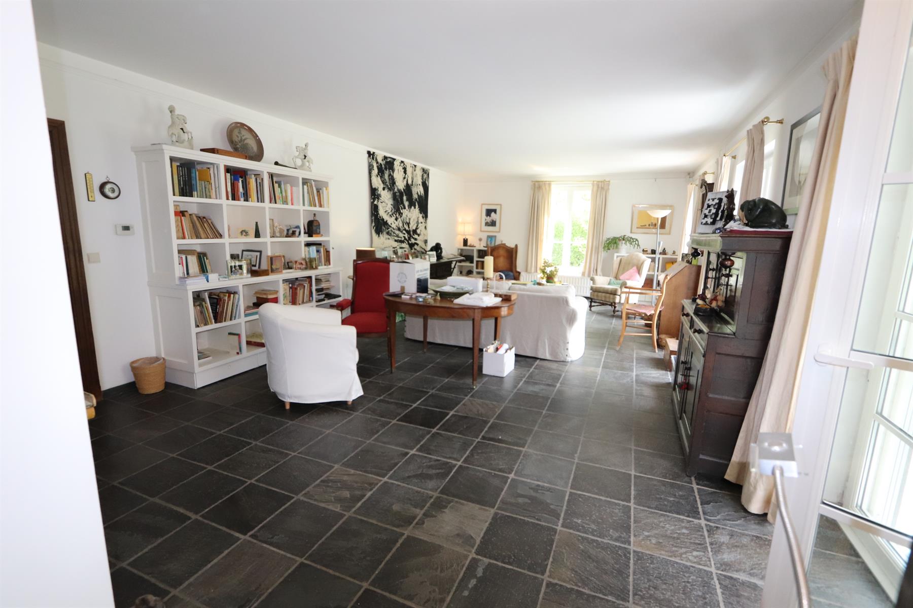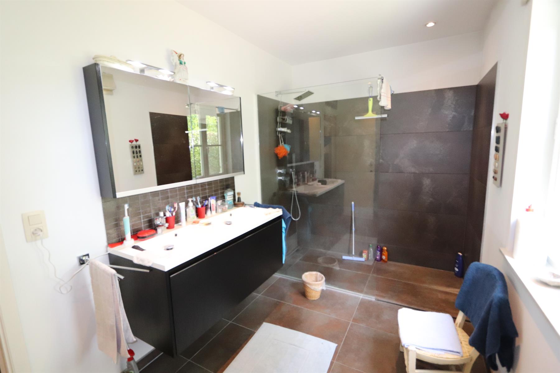 Sur un magnifique terrain de fond légèrement vallonné et idéalement orienté de 36 ares 15, à 5 min du centre d'Enghien, de son golf et de l'A8 ; superbe villa de 330 m² brut dont 260 m² habitable. Ell se compose d'un élégant hall d'entrée avec vestiaire et wc invité, d'un grand et lumineux séjour avec feu-ouvert (k-7), d'une cuisine super équipée, d'une chambre d' une salle de douche et d'un dressing pour lez rez-de-chaussée. .A l'étage,hall de nuit avec wc, 3 grandes chambres, un bureau , une salle de douche et un accès au grenier de rangement (isolé).Au niveau inférieure, Un grand garage automatique et les caves.